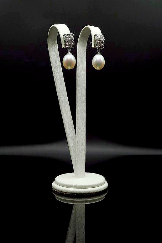 Eleganckie kolczyki z białej Perły z gatunku Rice z cyrkoniami