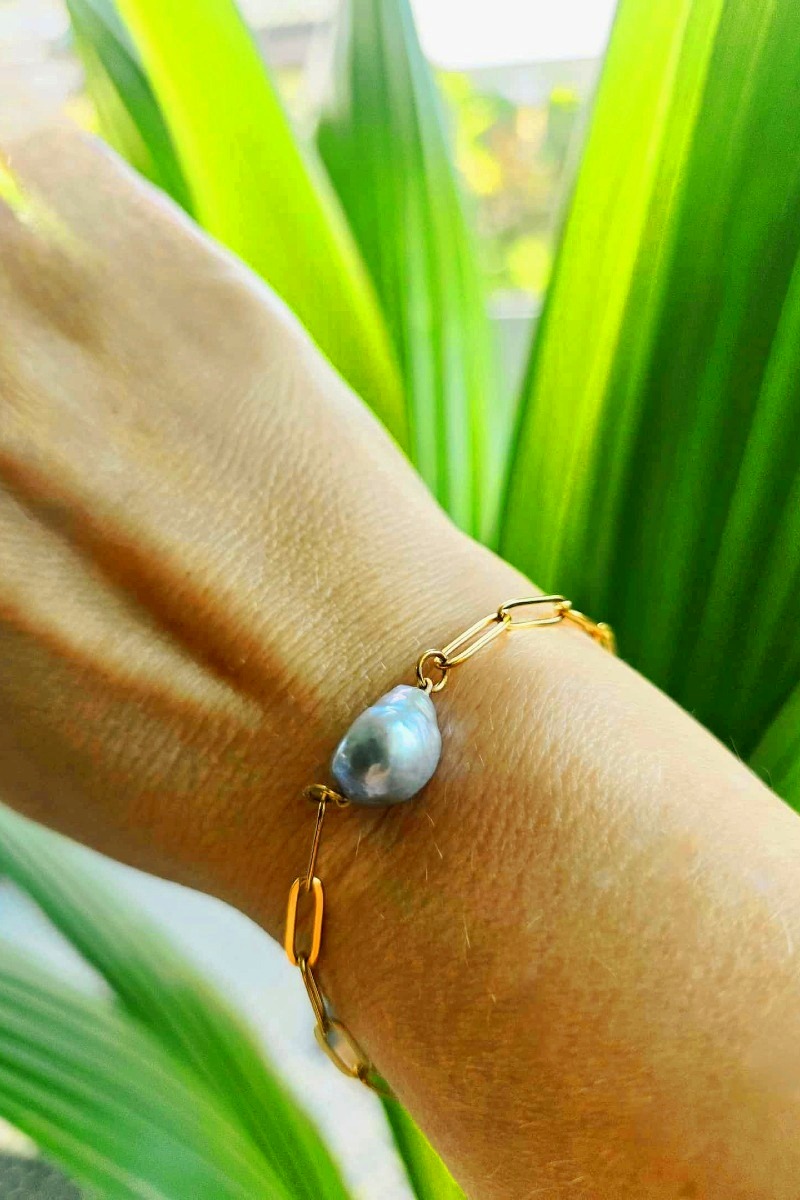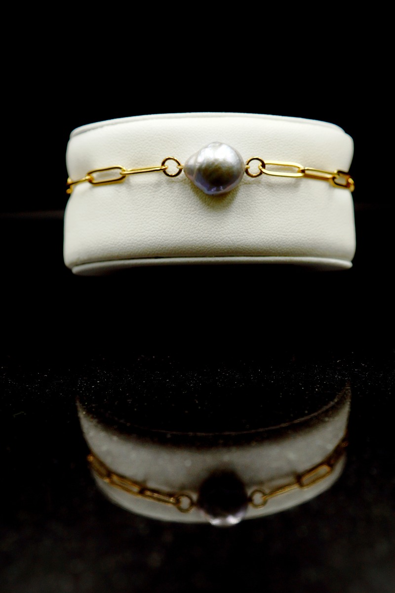 Bransoletka ze srebrną perłą na złotym łańcuszku